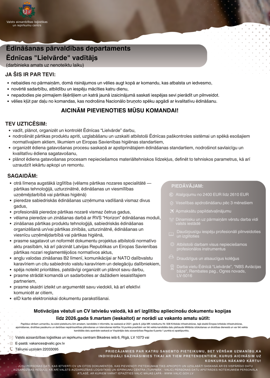 Ēdnīcas "Lielvārde" vadītājs